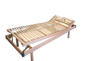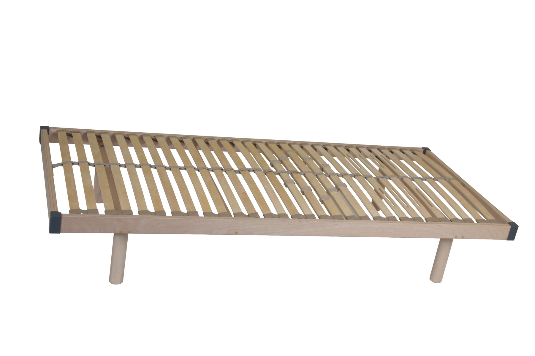 The initial semi product for frame laths is a layered pressed wood made of beech veneers which are 1,5mm thick. Unlike plywood, nearly all veneers have the same grain flow. By this, a high bending strength is achieved in the grain direction. After being processed, plywood boards are cut into frame laths of requested dimensions. Laths are used for the production of bed frames.